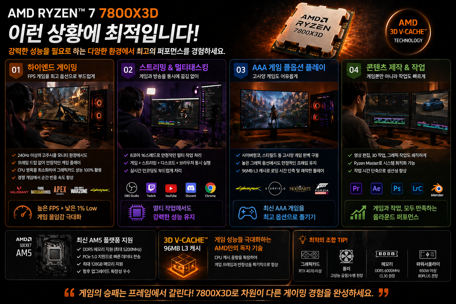 #AMD #라이젠7800X3D #7800X3D #라이젠7 #게이밍CPU #CPU추천 #하이엔드CPU #PC조립 #조립PC #컴퓨터부품 #CPU성능 #3DV캐시 #AM5 #DDR5 #게이밍PC #FPS게임 #고성능PC #컴퓨터업그레이드 #CPU리뷰 #가성비CPU